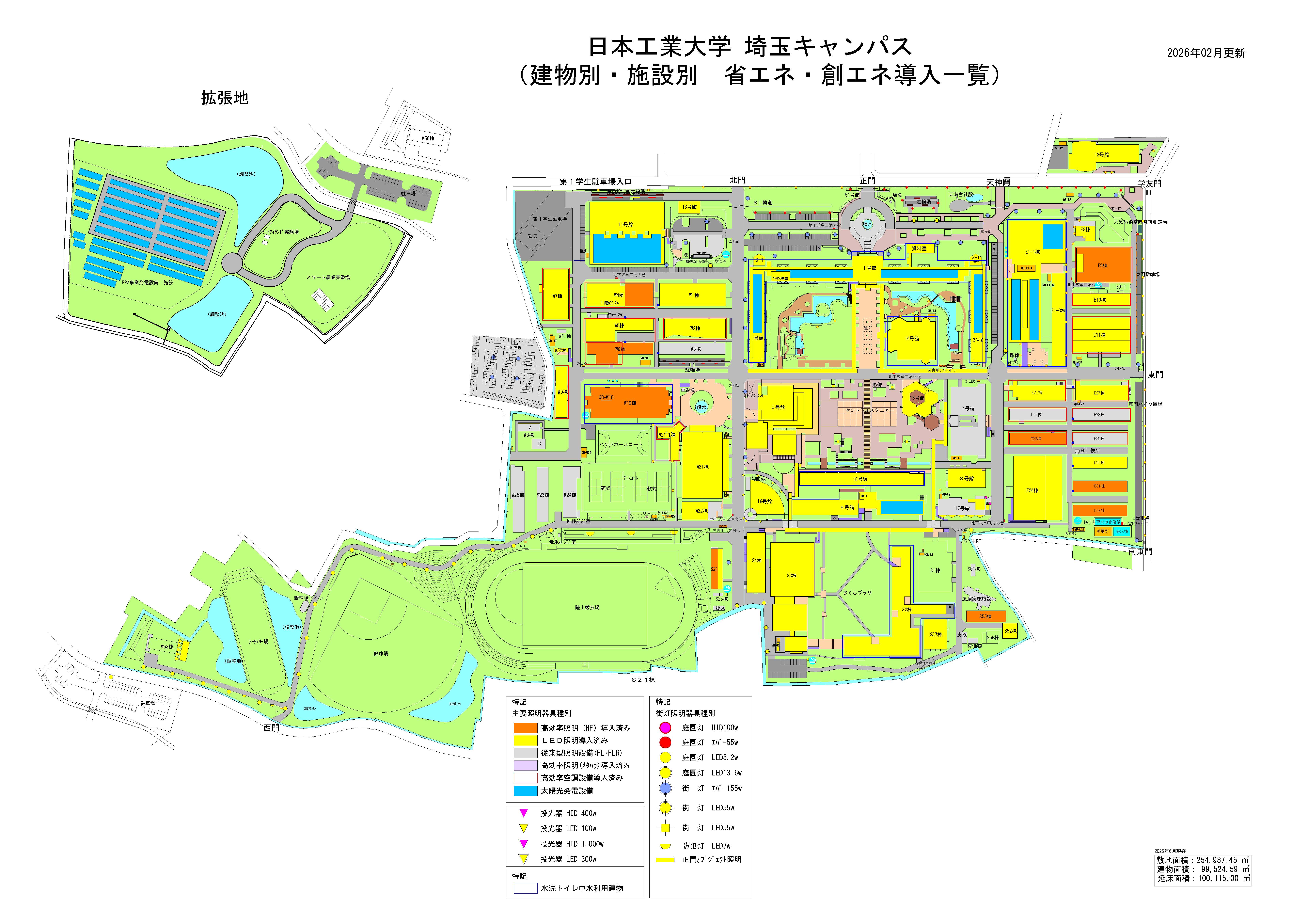 日本工業大学 埼玉キャンパス(建物別・施設別 省エネ導入一覧)