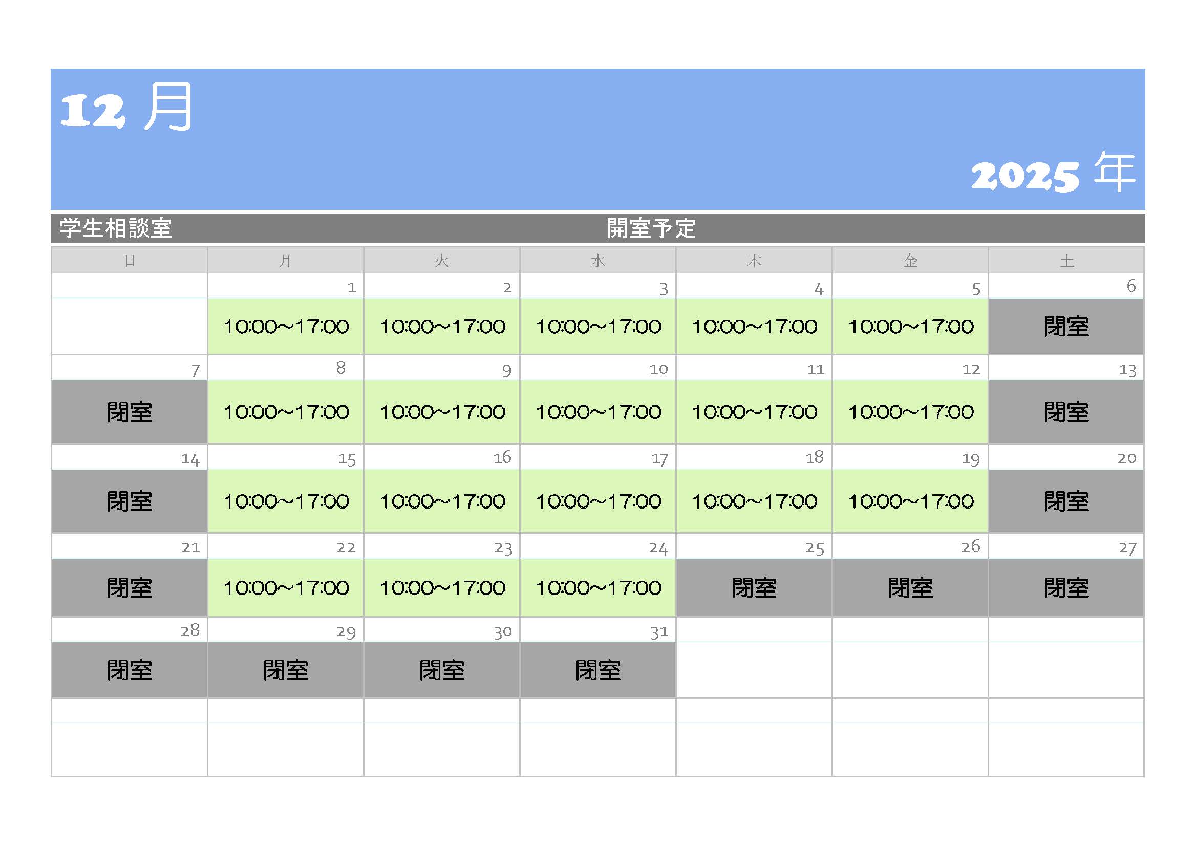 平日(月曜日~金曜日)10:00~17:00※春・夏期休業中も開室します。 |